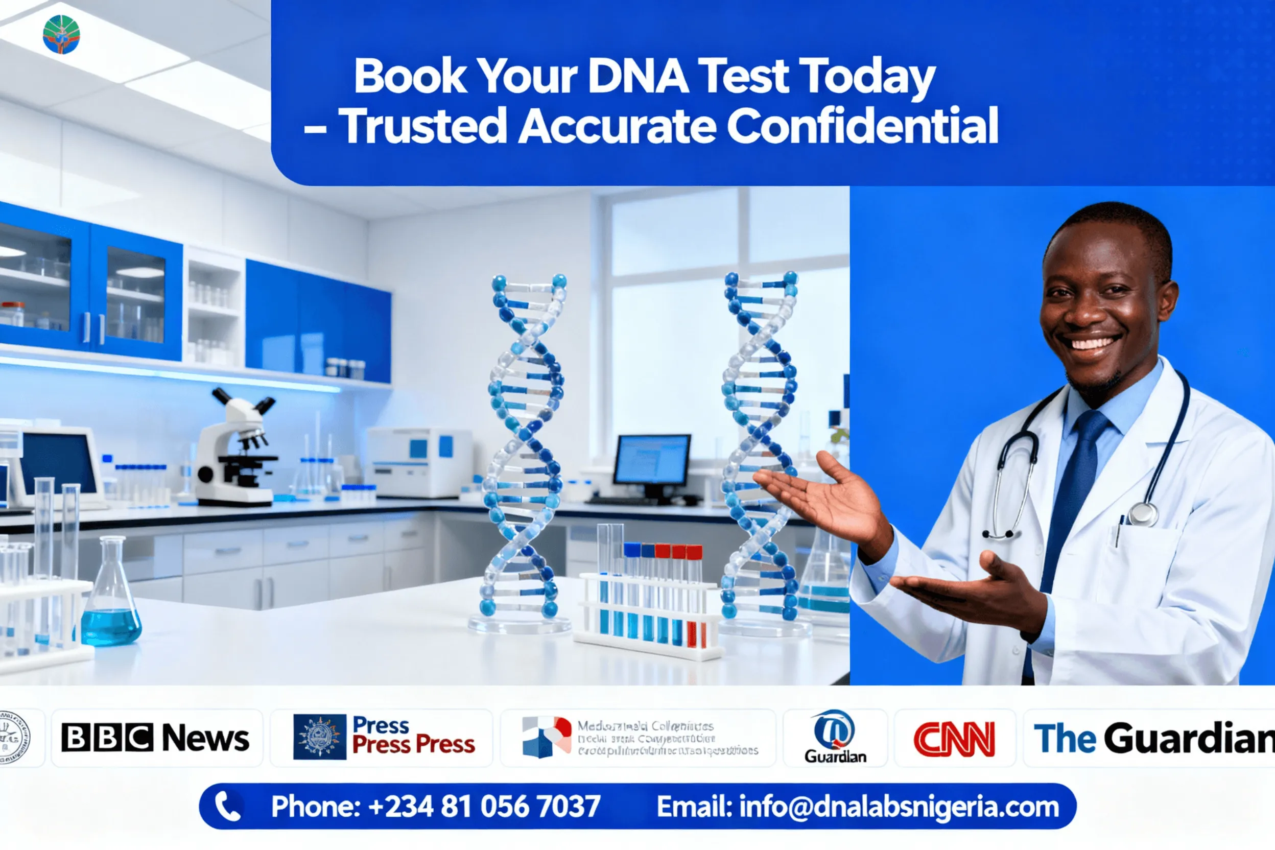 Choosing DNA Labs Nigeria means partnering with a laboratory dedicated to accuracy, confidentiality, and compassionate guidance. Our expert team provides fast, secure results and personalized counseling to help you understand your genetic journey with full confidence. We’re the trusted choice for Nigeria’s top hospitals, clinics, and thousands of individuals seeking answers for health, family, and the future. Experience the difference of proven quality and personal care—choose DNA Labs Nigeria.