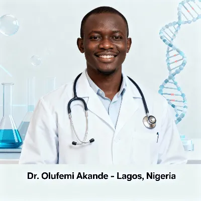 "Kehinde Adeyemi, M.Sc. Genetics (Obafemi Awolowo University), specializes in patient care and genetic education. Having guided hundreds through complex health decisions, he’s dedicated to providing compassionate, clear advice to help individuals and families understand their unique genetic profile."